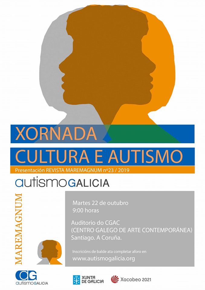 A Federación Autismo Galicia organiza esta xornada en colaboración coa Consellería de Cultura, Educación e Ordenación Universitaria que se celebrará o día 22 de Outubro de 9 a 14 horas no auditorio do CGACC (Centro Galego de Arte Contemporánea).
